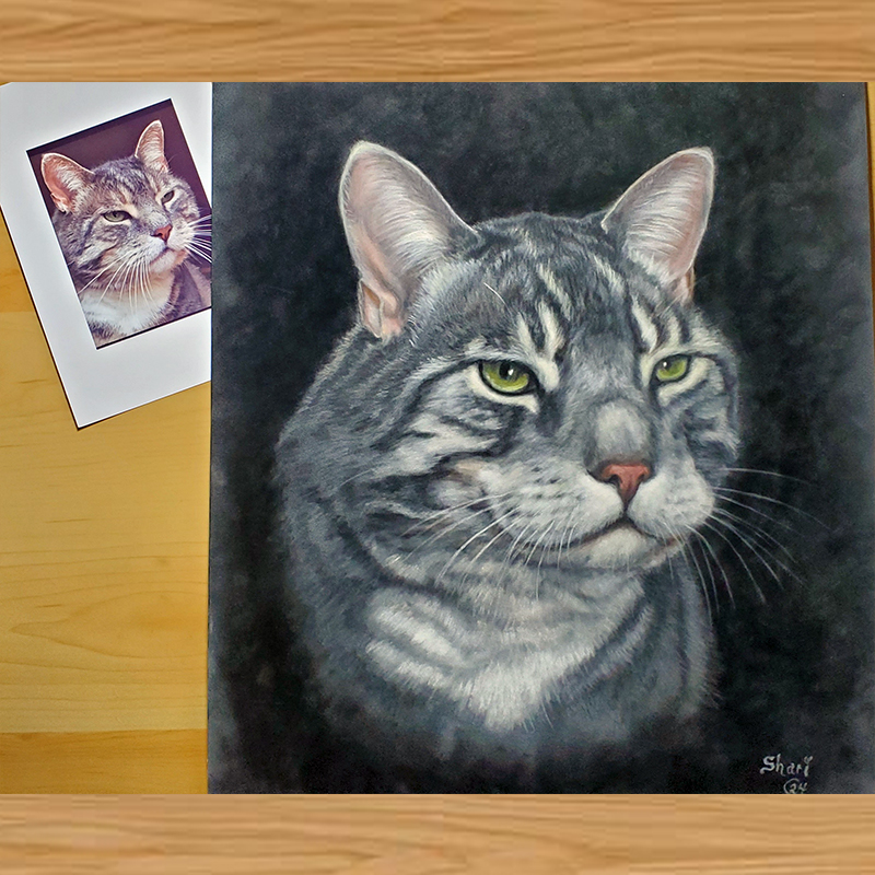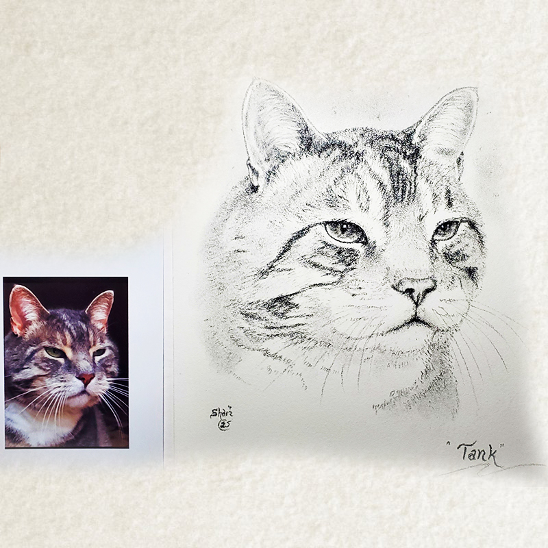 Shari’s artwork is thoughtfully created to capture the true spirit, personality, and unique presence of each animal. More than a visual likeness, every piece reflects a deep connection and understanding, honoring the bond between animals and the people who love them. Each portrait is a heartfelt creation of lasting love.