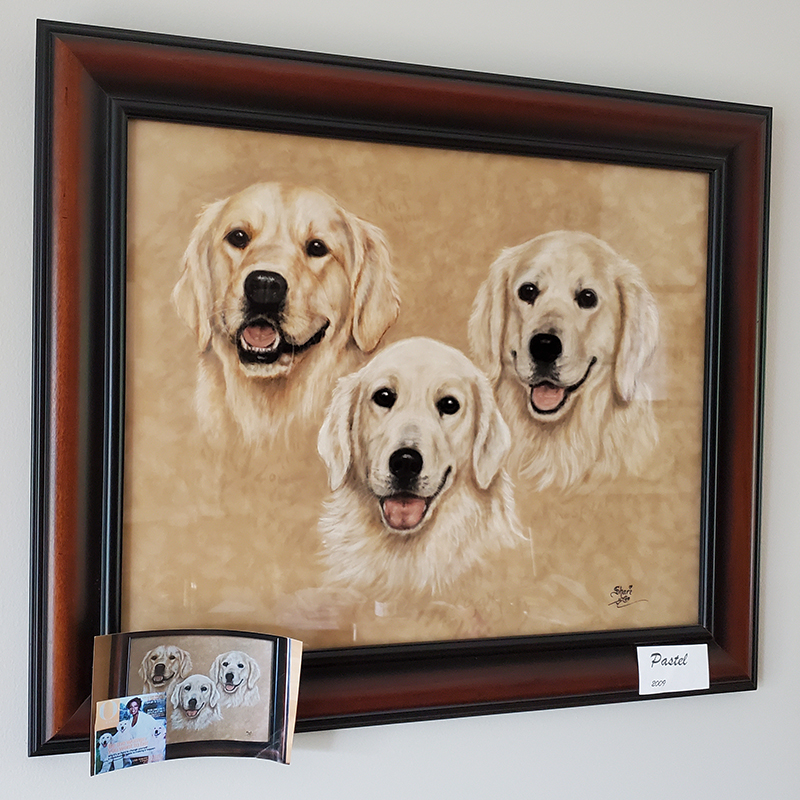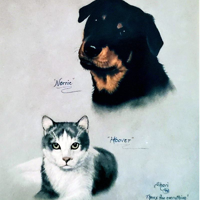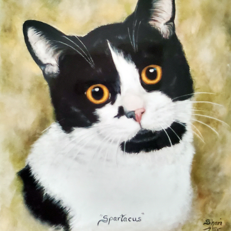 Shari captures the spirit and essence of animals that are much loved by you and your family. With photos you send to her used as her reference, these paintings make fabulous gifts and will be cherished for years.