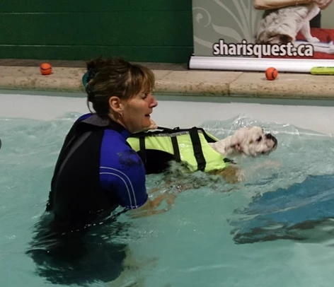 Although accepted into veterinary sciences at the University of Guelph in 1978, Shari chose a path that allowed her to specialize in companion animal care. She trained and pursued a career in human healthcare as a Laboratory Technologist while independently studying Companion Animal care, handling, anatomy, physiology, myology, behavior, training, massage, trigger/stress point and myofascial release, Reiki, holistic practices, magnetics, several therapeutic modalities, and canine hydrotherapy.